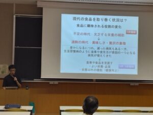 9月11日(木)「第30回一般・高校生向けセミナー」を開催しました。第30回は【アブラナ科野菜成分の健康機能〜骨格筋機能への効果〜】の演題で、伊藤 芳明 食と生活部門兼任教員(農学部教授)が講演を行い、27名の参加者に熱心に聴講いただきました。