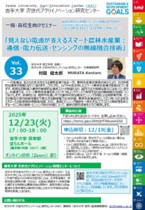 岩手大学次世代アグリイノベーション研究センターでは、一般・高校生向けセミナーを開催します。