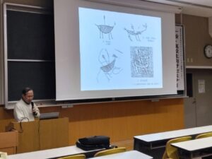 セミナーでは、縄文時代から現代に至るまでの野生動物と人間のかかわりについて、土器絵画などの出土資料や文献に記された内容も踏まえてご説明いただきました。