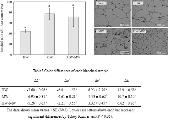 タイトル :Evaluation of the quality characteristics of carrots in combination with hot water and microwave blanching