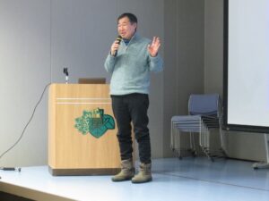 続いて、東京大学プラネタリーヘルス研究機構の高橋伸一郎様から、大量生産・大量消費を前提とした経済価値偏重の食生産・供給が地球環境に与える負荷の大きさを踏まえ、未利用・新規資源を活用した必要量を満たす食生産を通じた地球負荷軽減へのパラダイムシフトについて、「One Earth Guardians育成プログラム」の事例を交えてご講演いただきました。