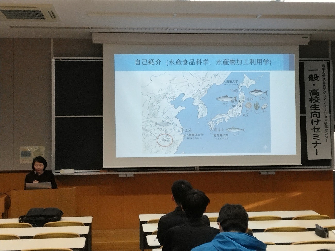 4月22日(水)に「第34回 一般・高校生向けセミナー」を開催しました。今回は 「魚を科学する―おいしさ・鮮度・健康機能の秘密―」 をテーマに、袁 春紅(食と生活部門・農学部教授)が講演を行い、48名の参加をいただきました。